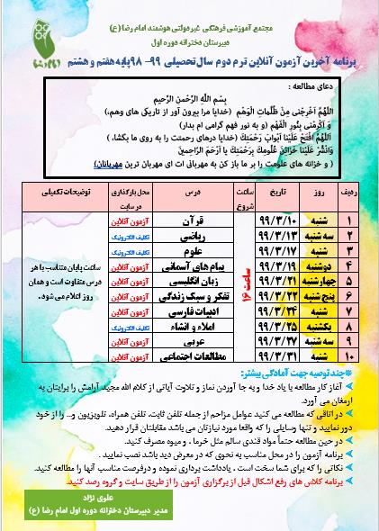 برنامه آخرین آزمون آنلاین سال تحصیلی 99-98(پایه هفتم و هشتم )