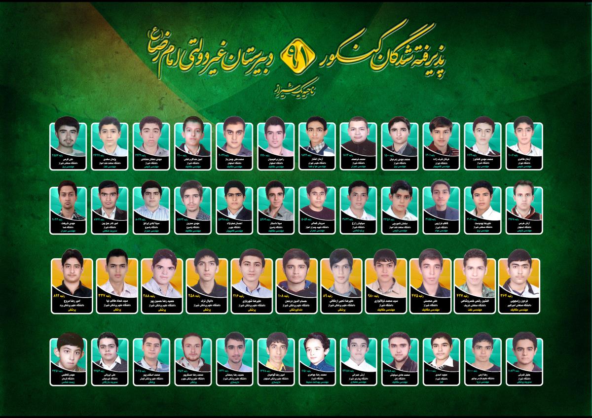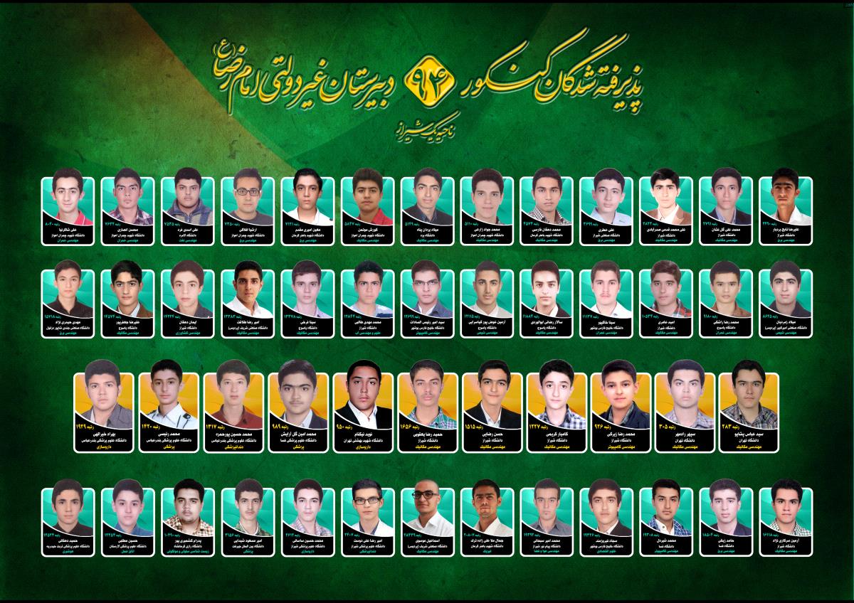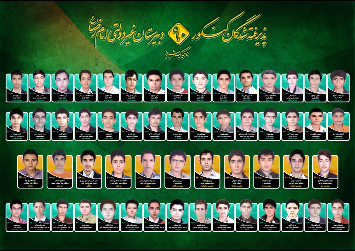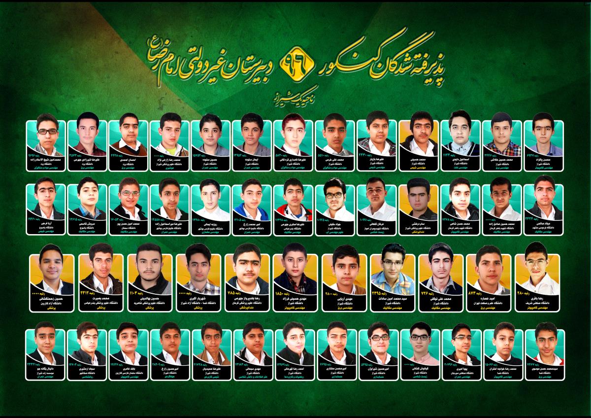 پذیرفته شدگان کنکور امام رضا 90 تا 96