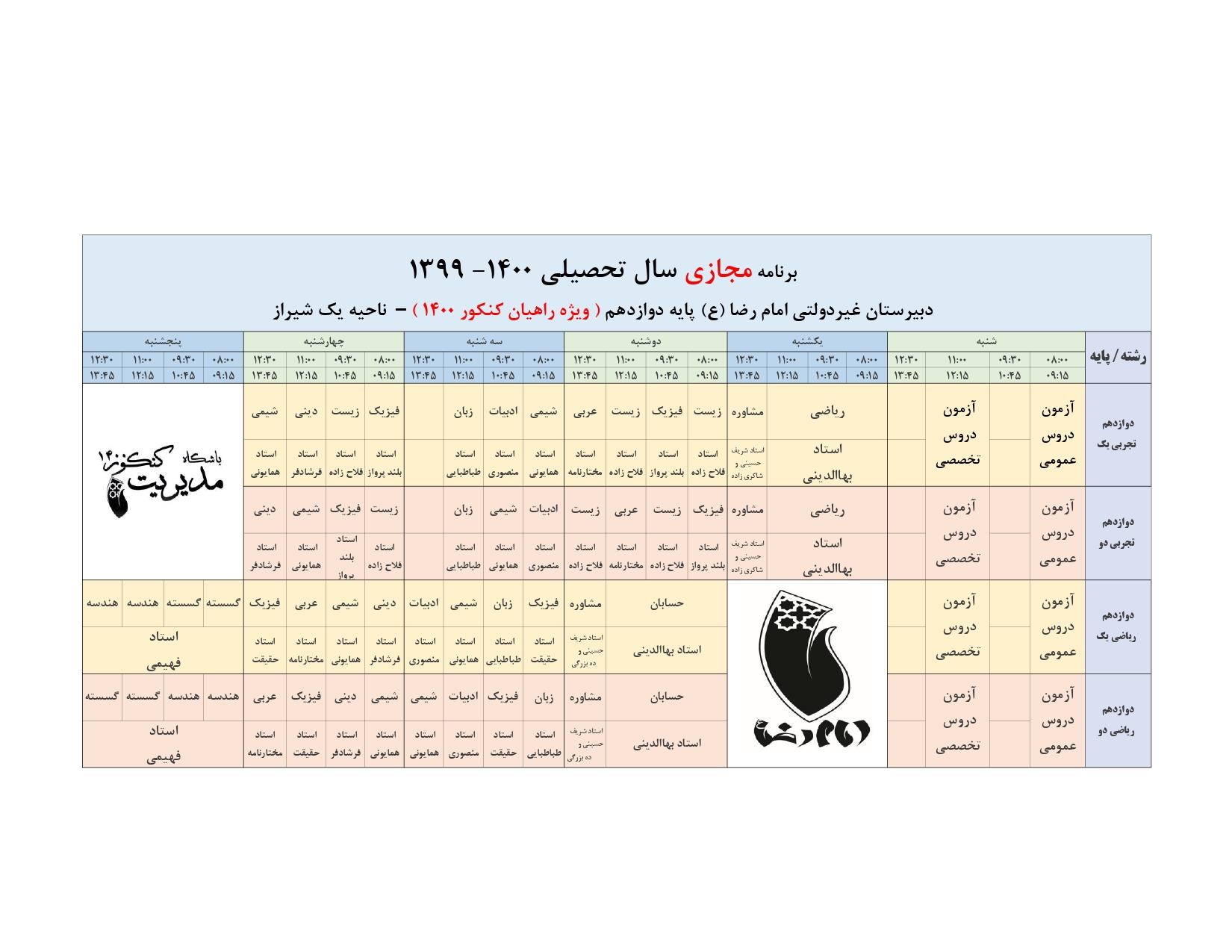 برنامه مجازی پایه دوازدهم سال تحصیلی 1400-1399
