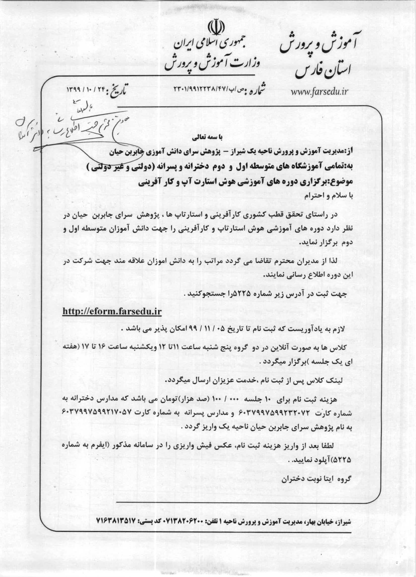 برگزاری دوره های آموزشی هوش استارت آپ و کارافرینی