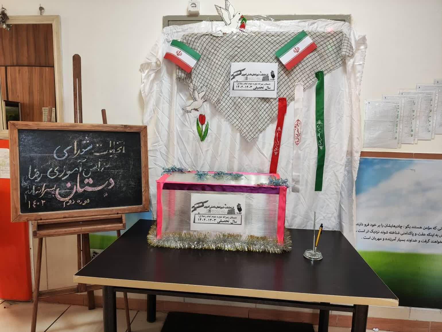 بر اساس تقویم اجرایی و برنامه های وزارت آموزش و پرورش، فرایند انتخابات شورای دانش آموزی در مهرماه آغاز شد. دانش آموزان علاقمند به عضویت ضمن تبلیغات خود را آغاز و فضای پرشور انتخاباتی محیط مدرسه را فرا گرفت. به جهت آشنایی دانش آموزان با فضای انتخاباتی دانش آموزان کلاس ششم به صورت حضوری و پای صندوق های رای و سایر دانش آموزان به صورت برخط و از طریق صفحه ی شخصی خود در سایت مجتمع امام رضا(ع) در انتخابات شرکت و دانش آموزان برگزیده به مدت یک سال انتخاب شدند.