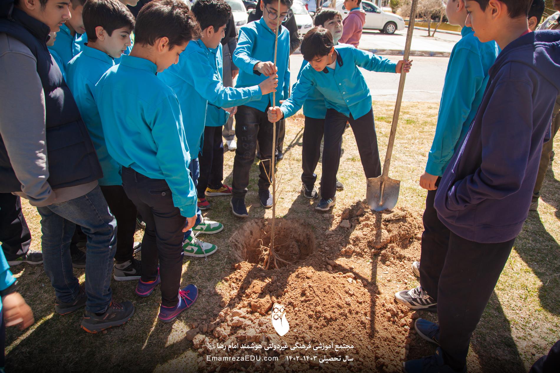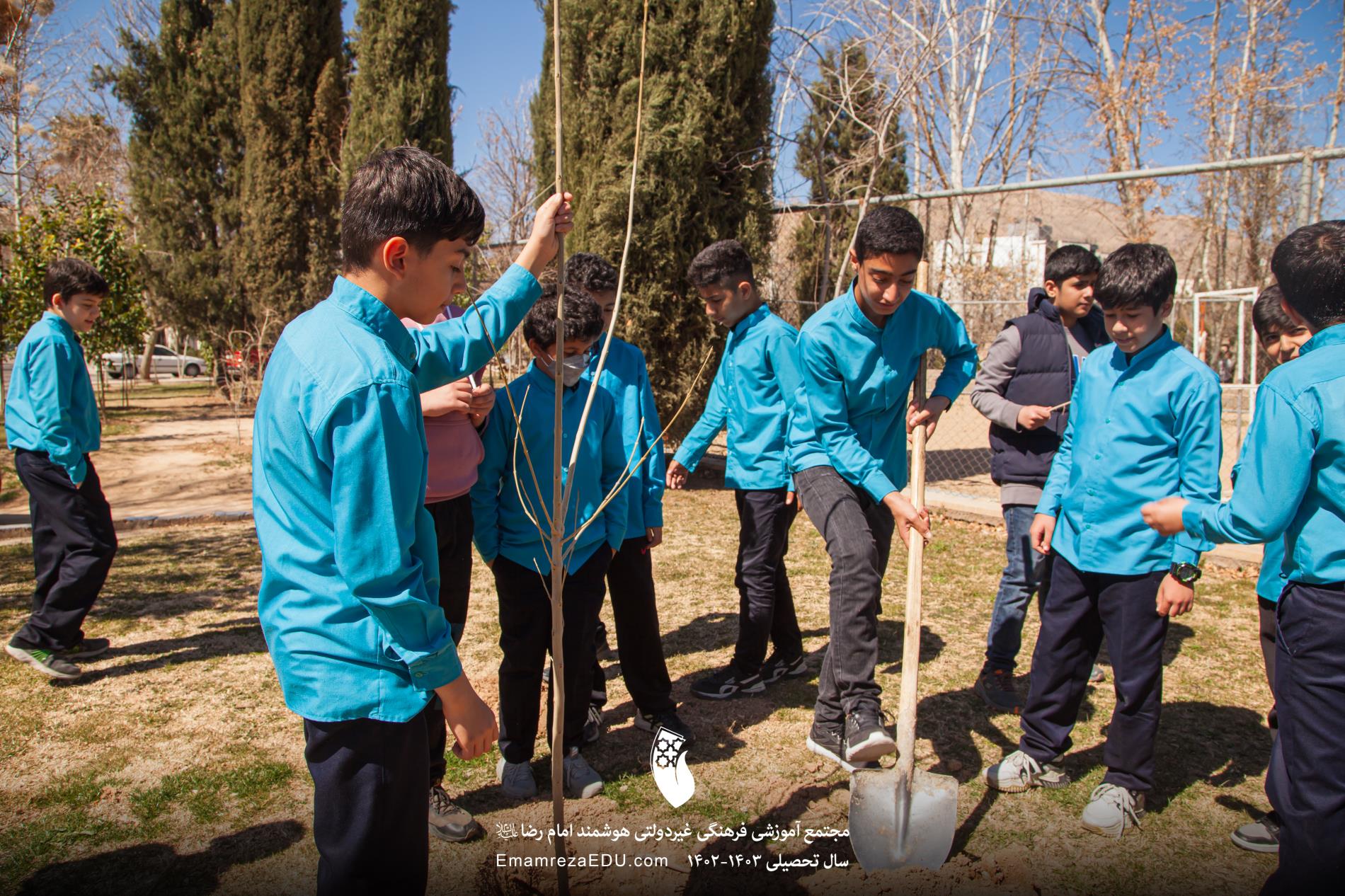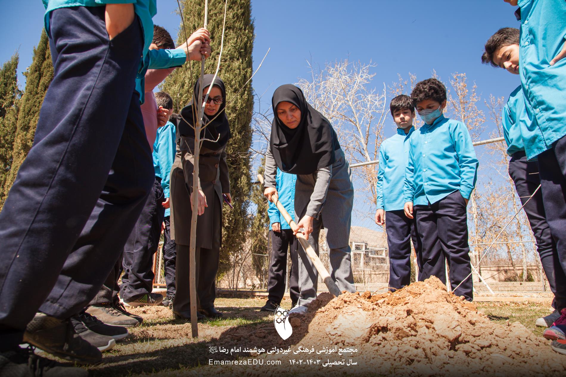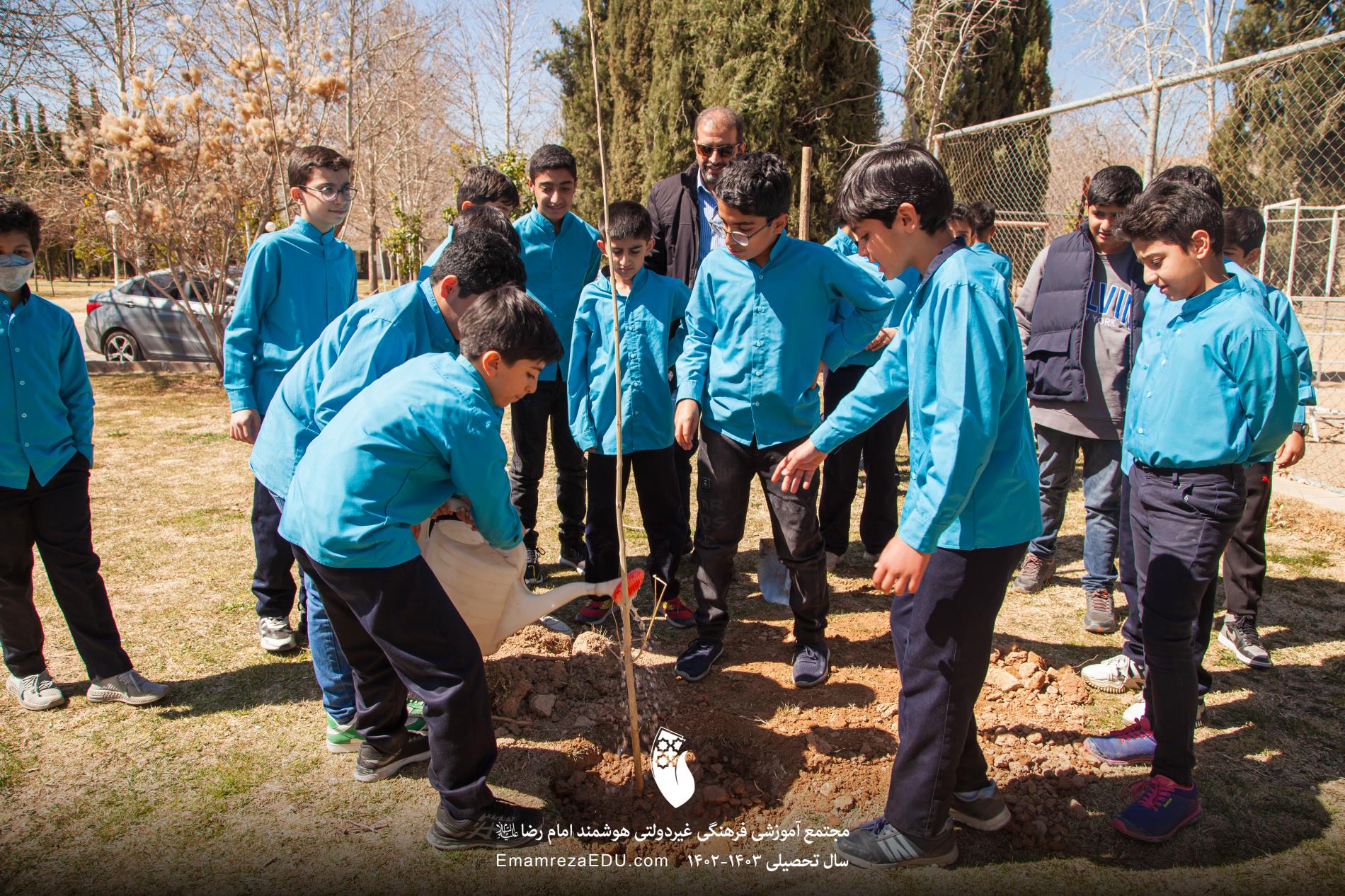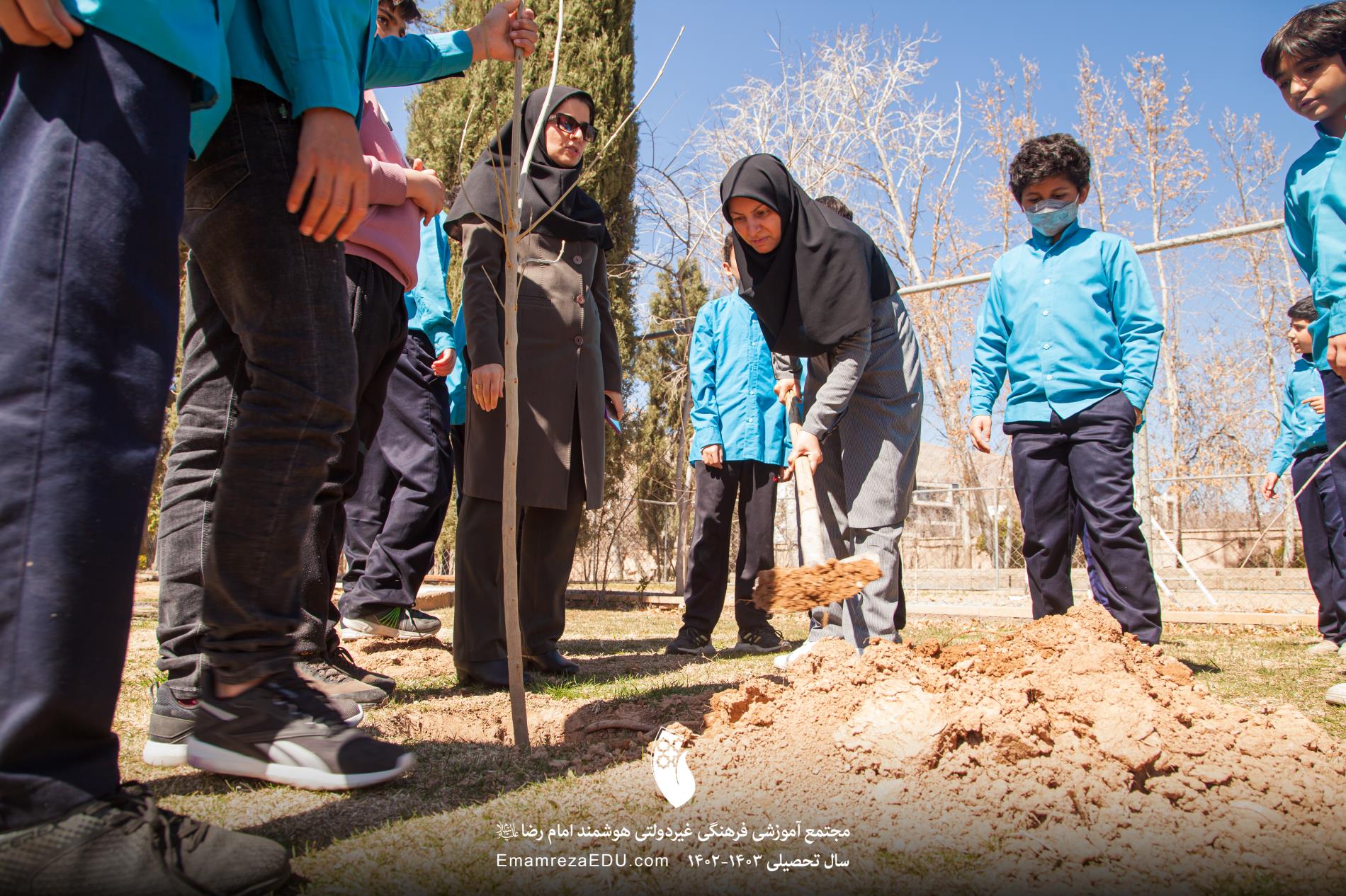 در دبستان امام رضا نیز به پاسداشت این روز دانش آموزان هر کلاس به صورت گروهی در حیاط مدرسه نهال کاشتند و به استقبال نوروز رفتند.