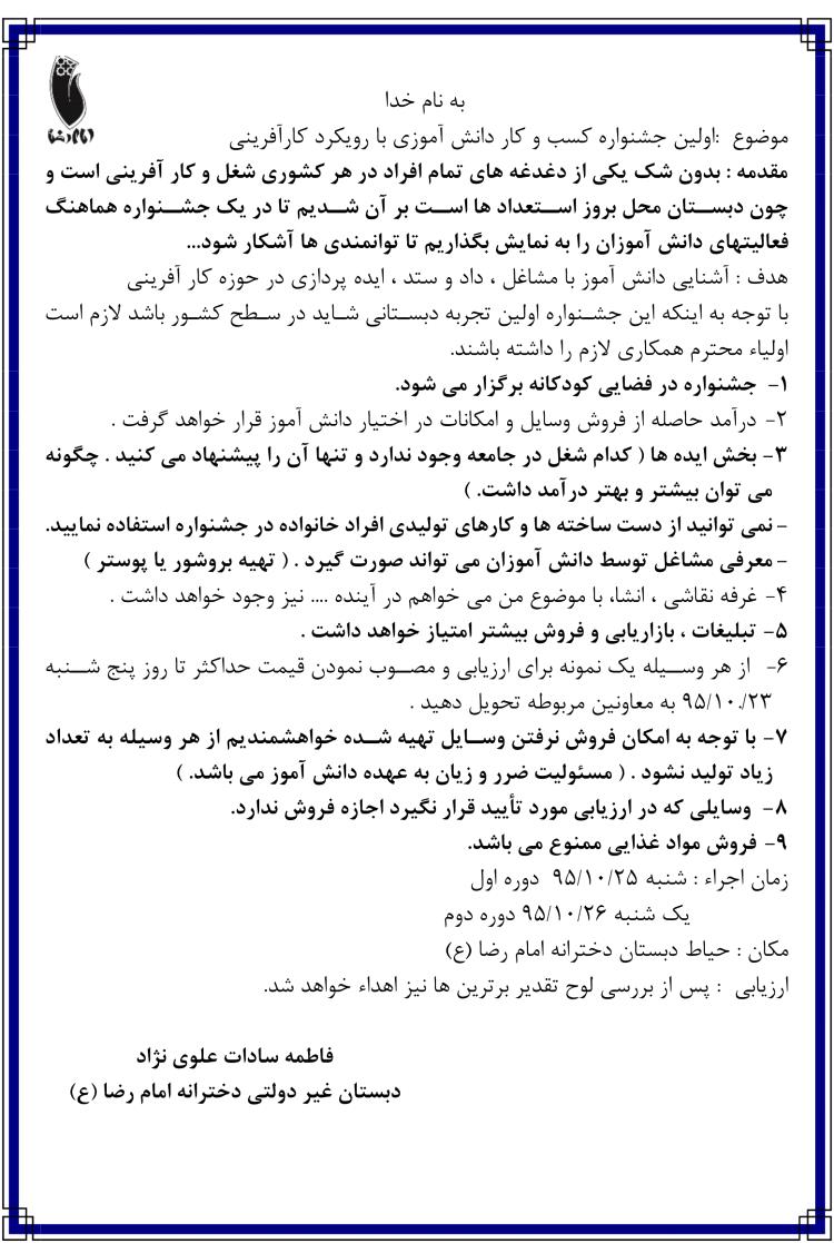 اطلاعیه تغییر زمان جشنواره کسب و کار http://www.emamrezaschool.com/DD/WebForm1.aspx?id=10246