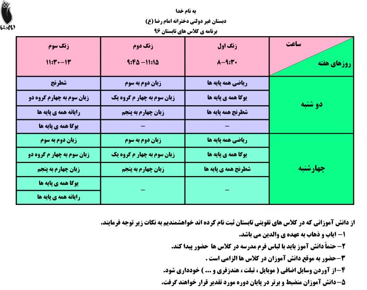 برنامه ی کلاس های تابستان 96