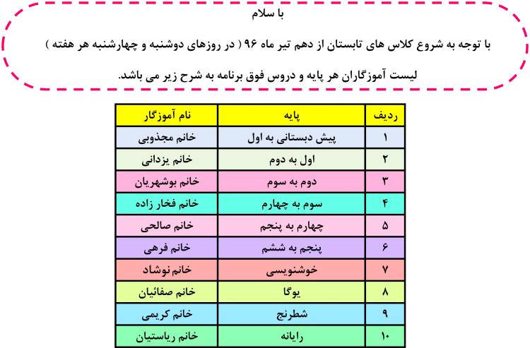 سلام خوشنویسی چه ساعتی است وبرای کدوم پایه ؟؟