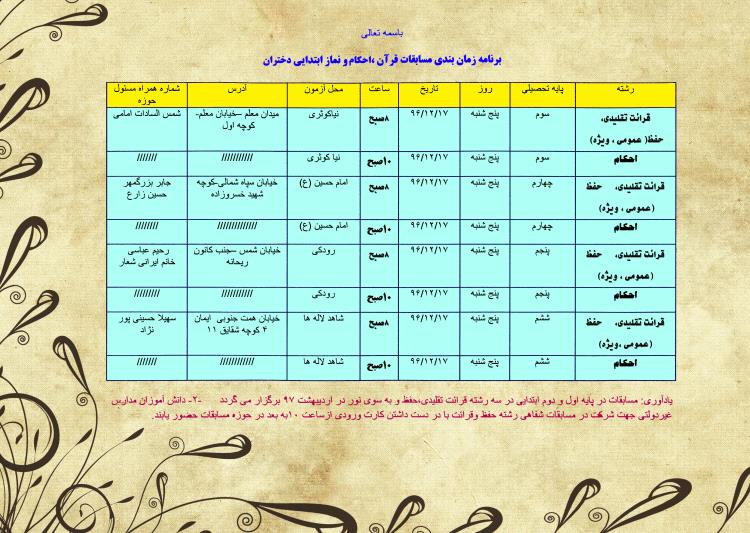 برنامه زمابندی مسابقات قرآن و احکام ابتدایی