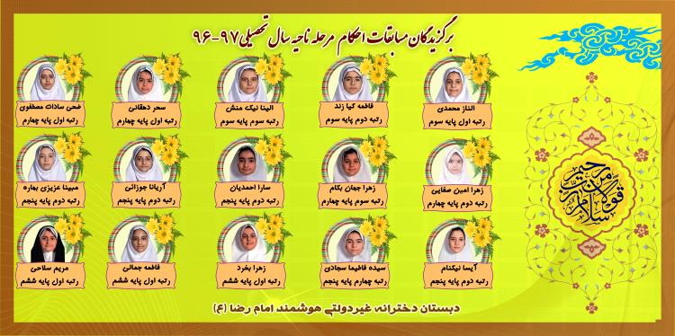 ستارگان قرآن و عترت دبستان دخترانه غیردولتی هوشمند امام رضا(ع)