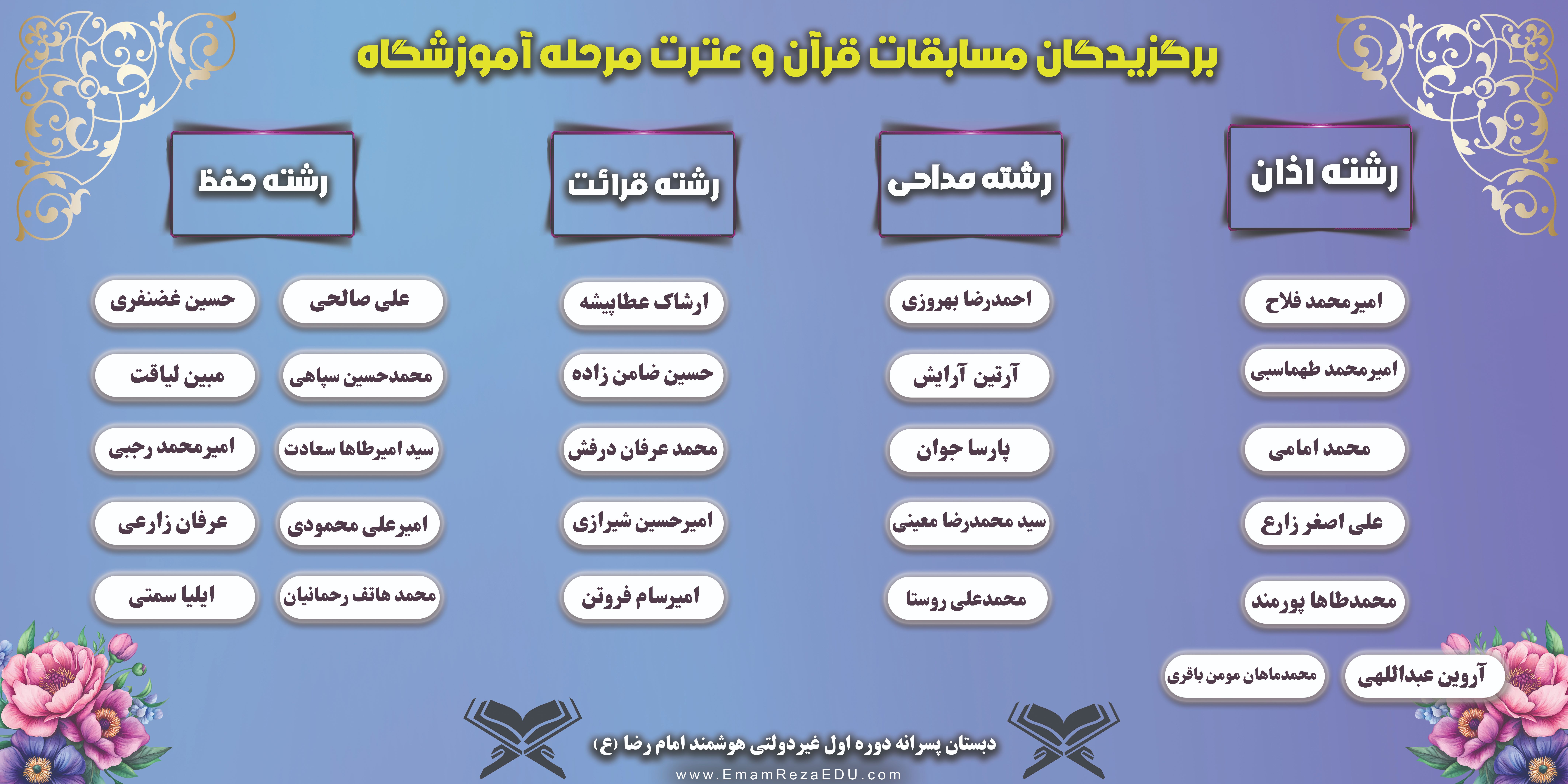 مسابقات قرآن و عترت مرحله آموزشگاه