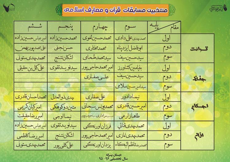 منتخبین مسابقات قرآن و معارف اسلامـــی