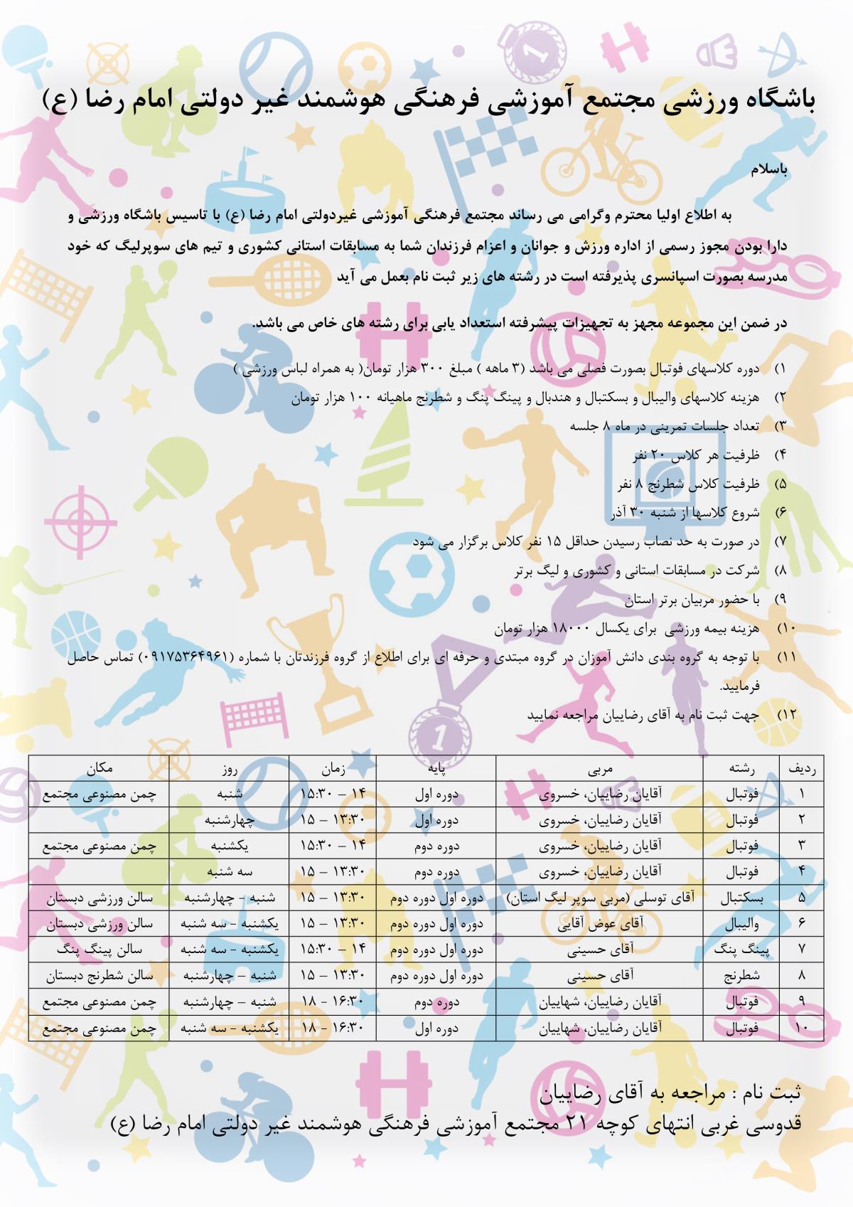 سلام خدابخشی هستم بسکتبال اقای توسلی شنبه و چاهار شنبه