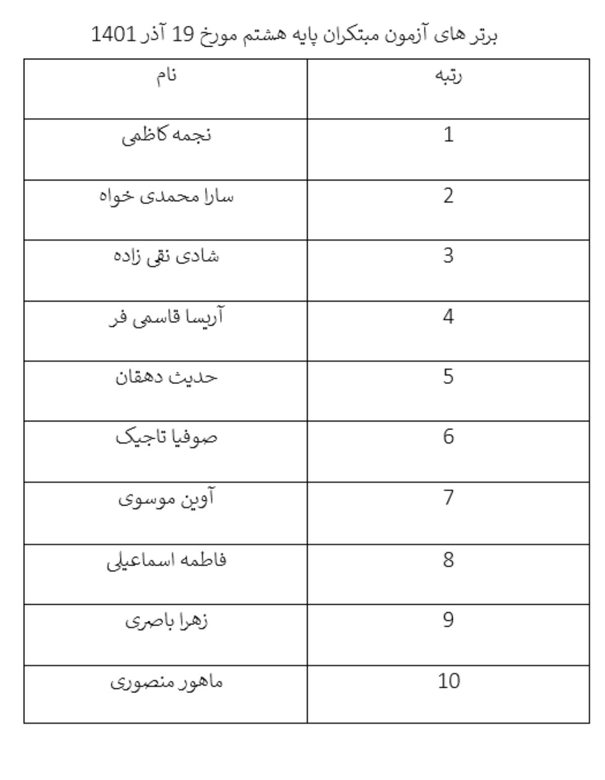 برترين هاى آزمون مبتكران پايه هشتم مورخ ١٩ آذر ماه ١٤٠١
