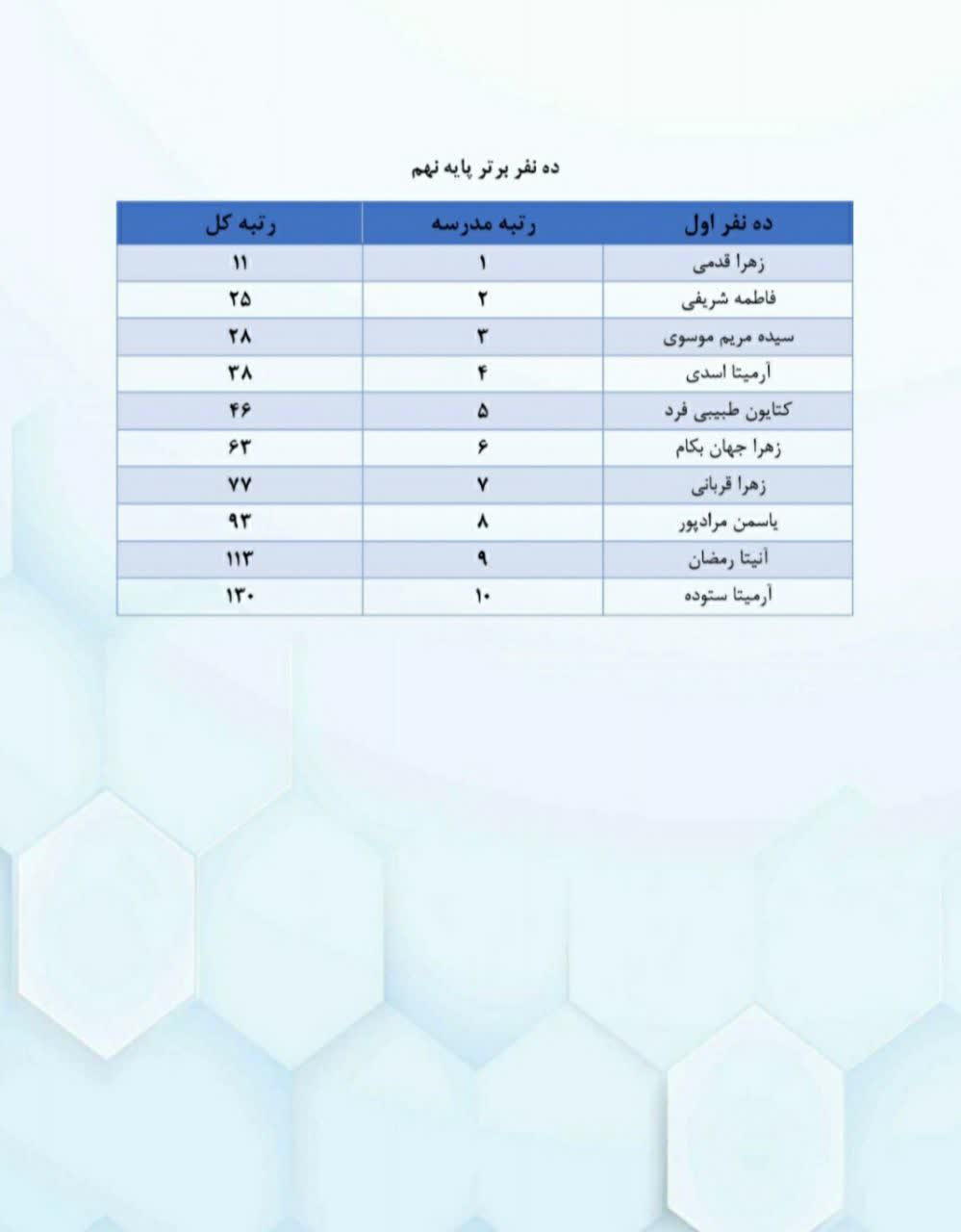 نفرات برتر آزمون مبتکران مورخ ۱۰ اسفند ماه ۱۴۰۱ پایه نهم🌺🌺