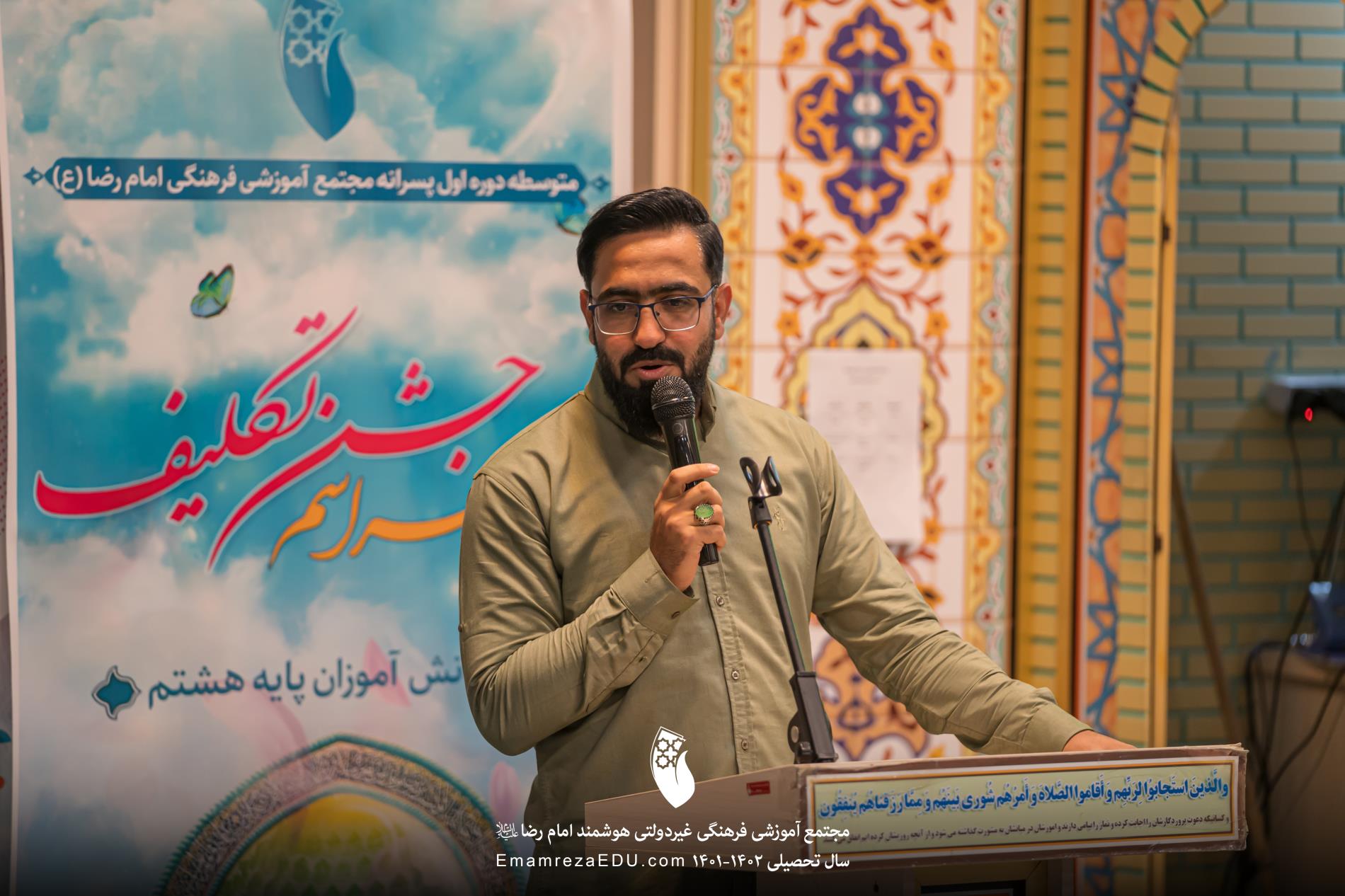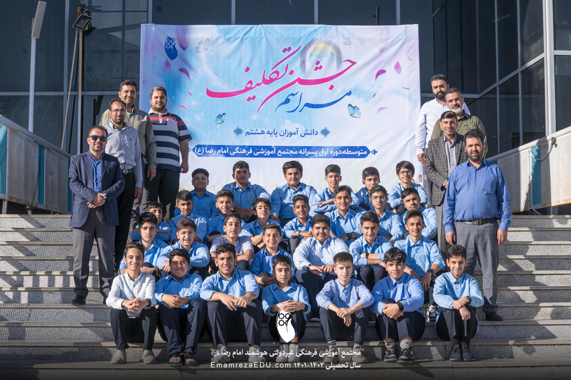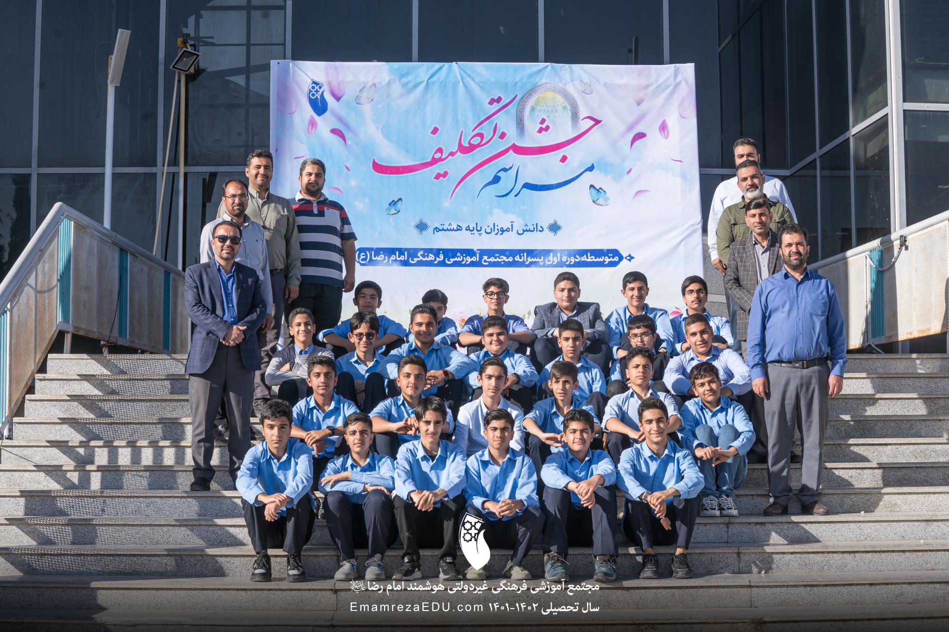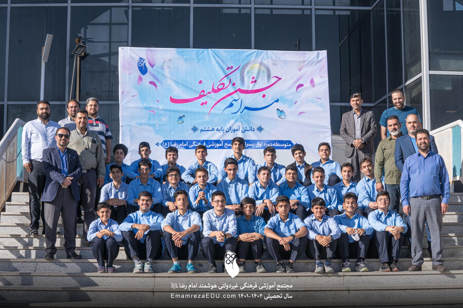 جشن تکلیف کلاس هشتم امسال با رویه ای متفاوت نسبت به سالهای قبل انجام شد و درکنار کارشناسان مذهبی برنامه های شاد ومتنوع ورزشی انجام گردید جای دارد از مدیریت محترم جناب آقای دانشمند جناب آقای عابدی بعنوان مدیرفرهنگی مجتمع تیم رسانه ای مجتمع جناب آقای حامد زارع وهمکارانشان دبران ورزش ومعاونین همیشه پای کار بخاطر حمایت وحضور دربرنامه تشکر کنیم برنامه در روز11 اردیبهشت درمحل مجتمع برگزار گردید.