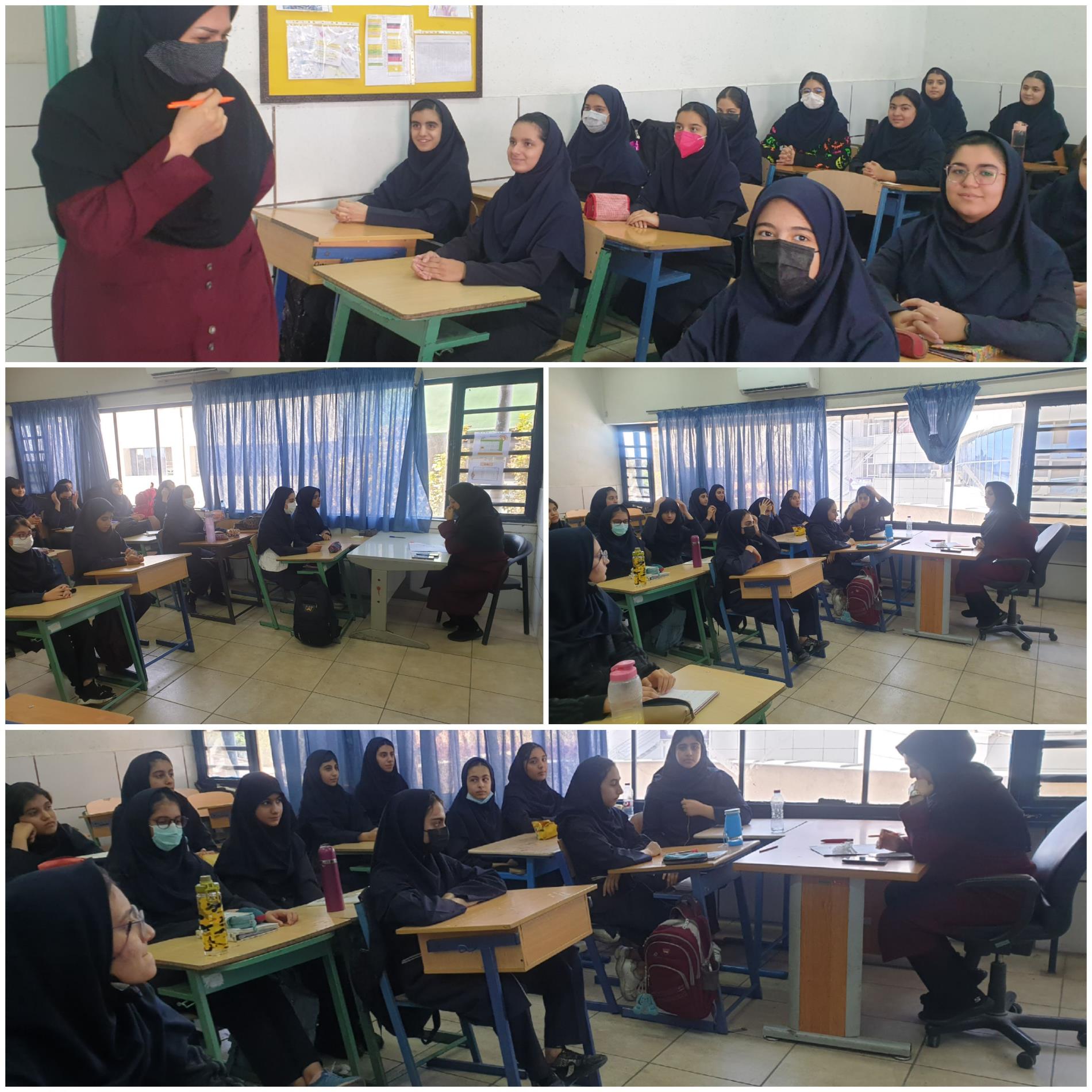 حضورسرکارخانم لیاقت مدیریت درکلاس های پایه هشتم صحبت پیرامون مسائل آموزشی وانضباطی