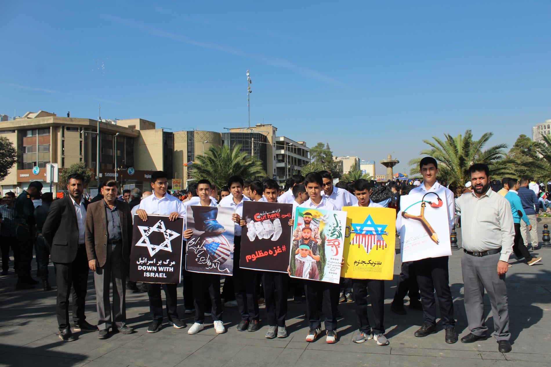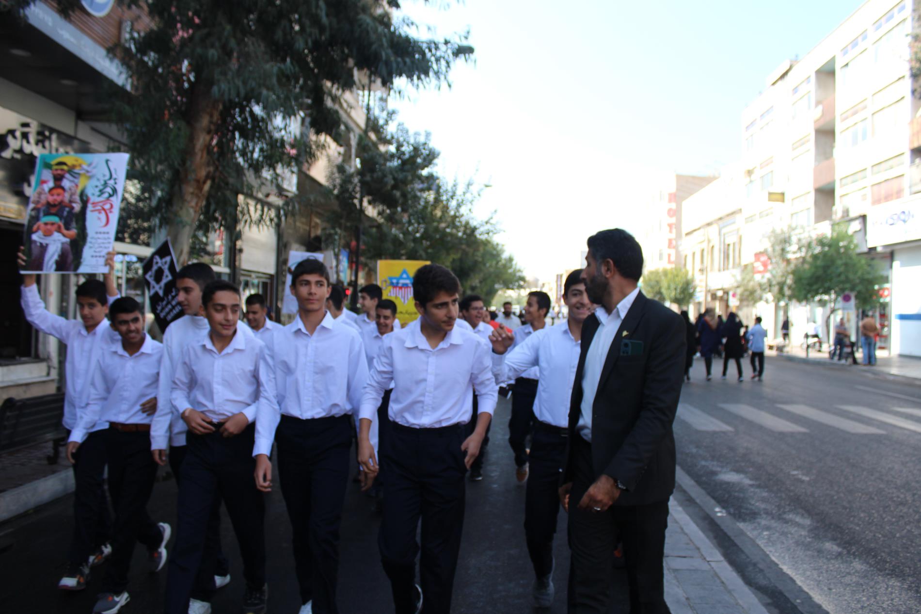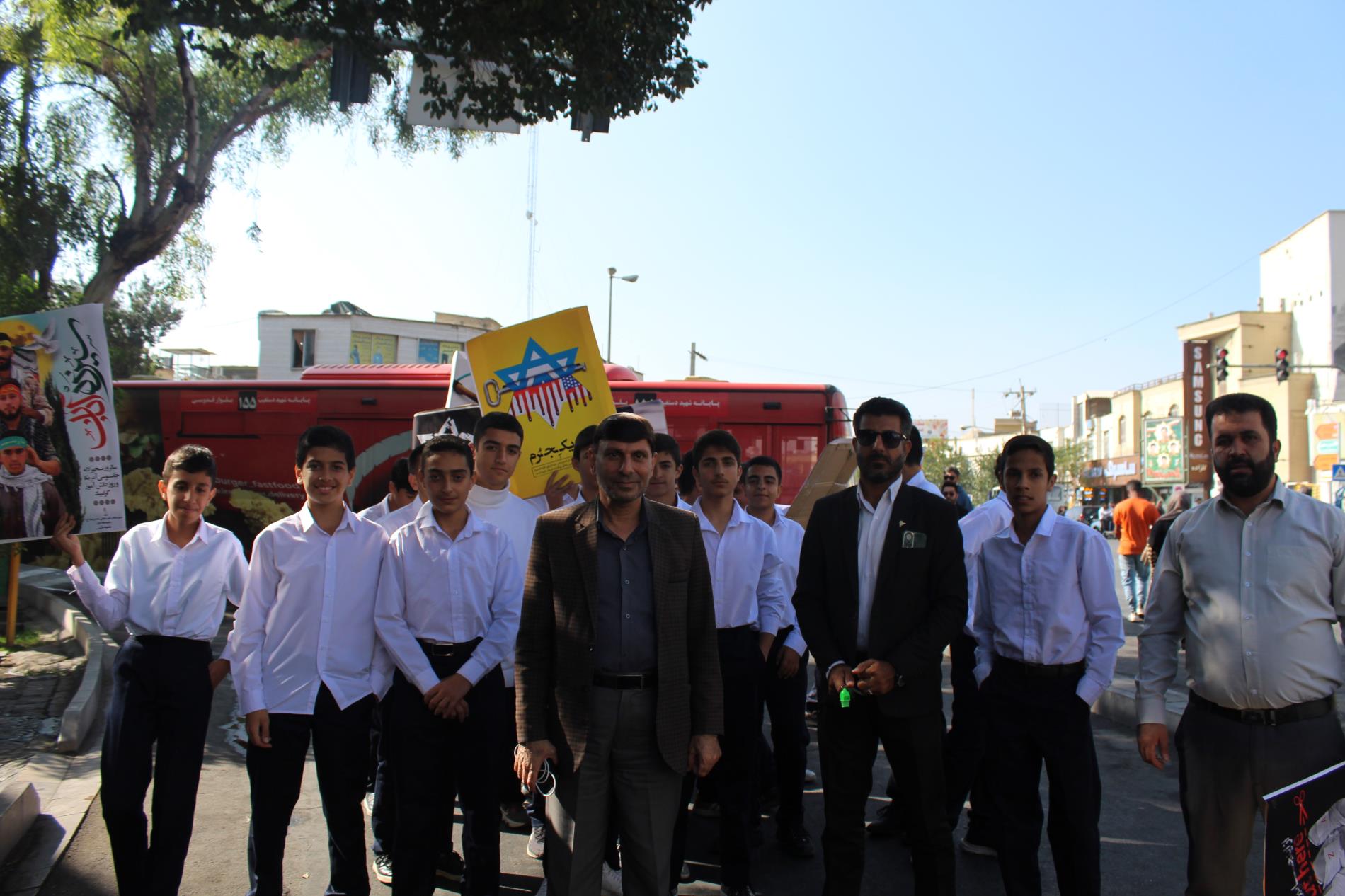 تعدادی از دانش آموزان عزیز دزروز13 آبان درتجمع ومراسم بزرگداشت این روز در میدان شهر داری به همراه کادر مدرسه حضور یافتند