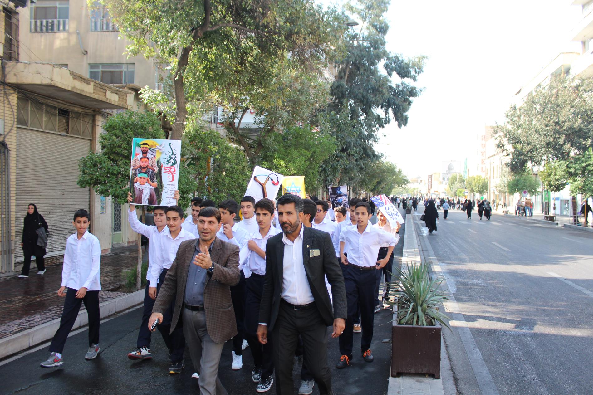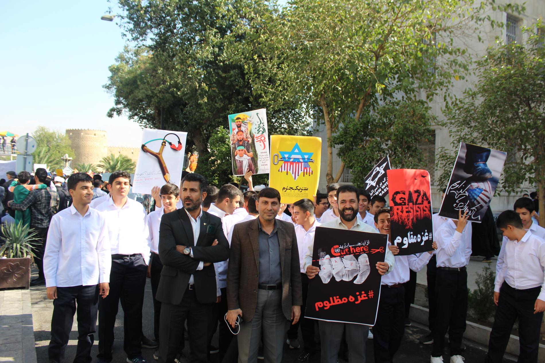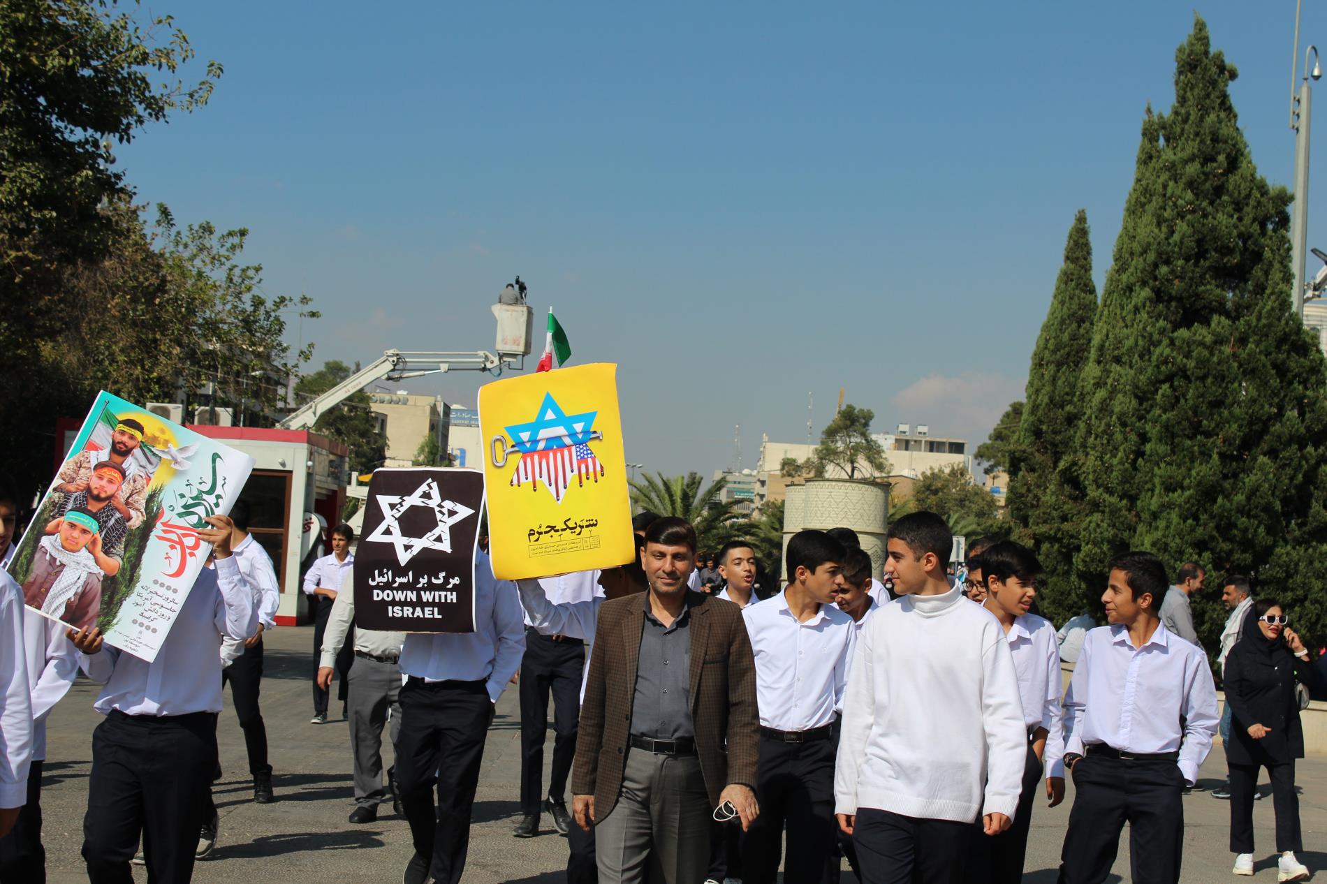 تعدادی از دانش آموزان عزیز دزروز13 آبان درتجمع ومراسم بزرگداشت این روز در میدان شهر داری به همراه کادر مدرسه حضور یافتند