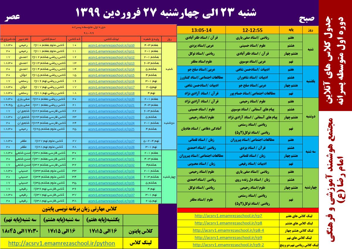 کلاس های مجازی از شنبه 23 فروردین ماه