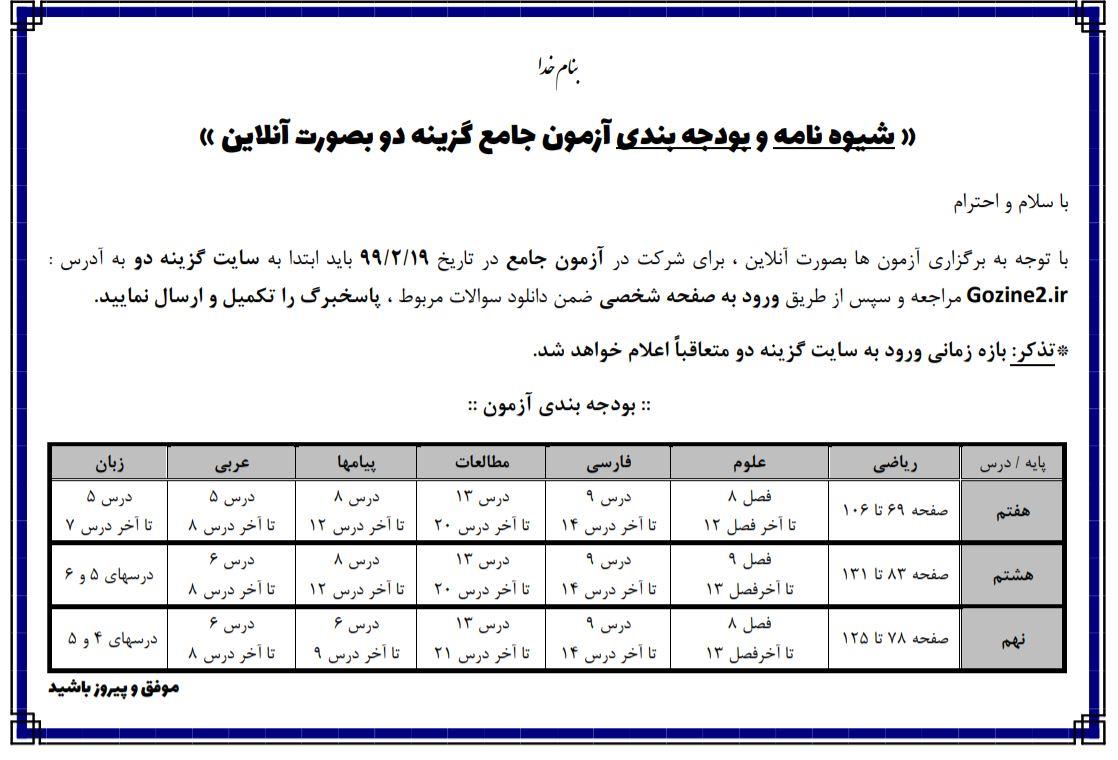 آزمون آنلاین گزینه دو - جمعه 19 اردیبهشت