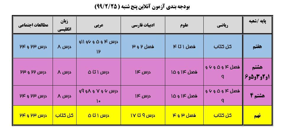 تاریخ آزمون : پنج شنبه 25 اردیبهشت 99