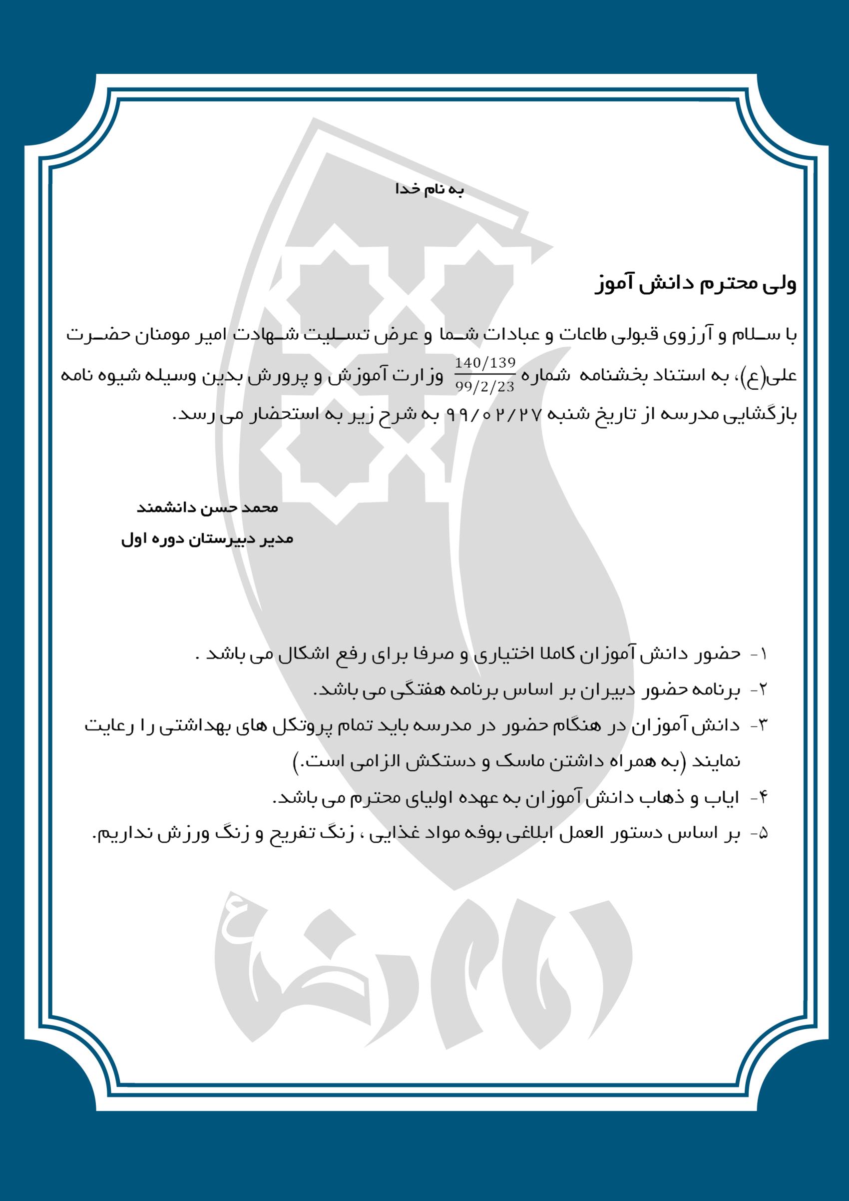 شیوه نامه بازگشایی مدرسه از 27 اردیبهشت