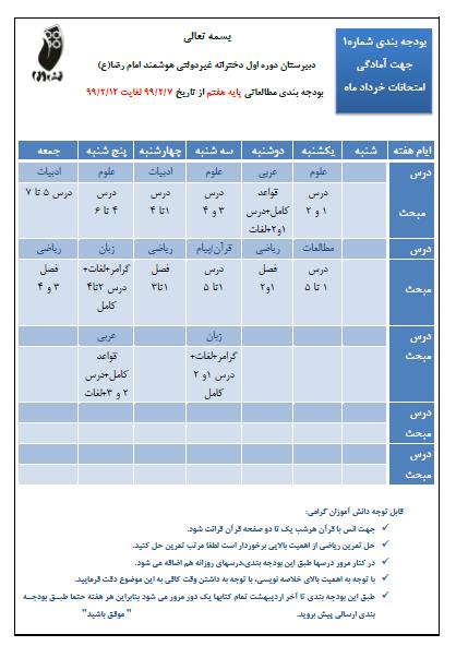 برنامه مطالعاتی 7 تا 12 اردیبهشت