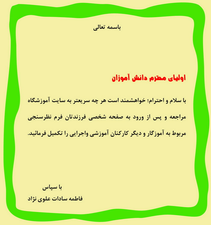سانا غلامی پنجم دبستان دخترانه. نیلوفر یک . با سپاس فراوان از زحماتتان