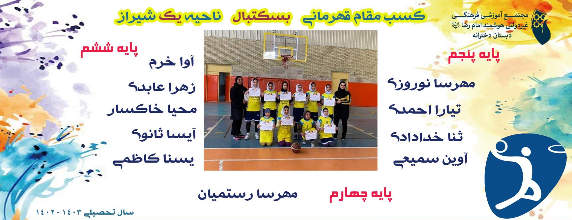 قهرماني تيم بستكتبال دانش آموزان دوره دوم دبستان دخترانه در ناحيه يك شيراز