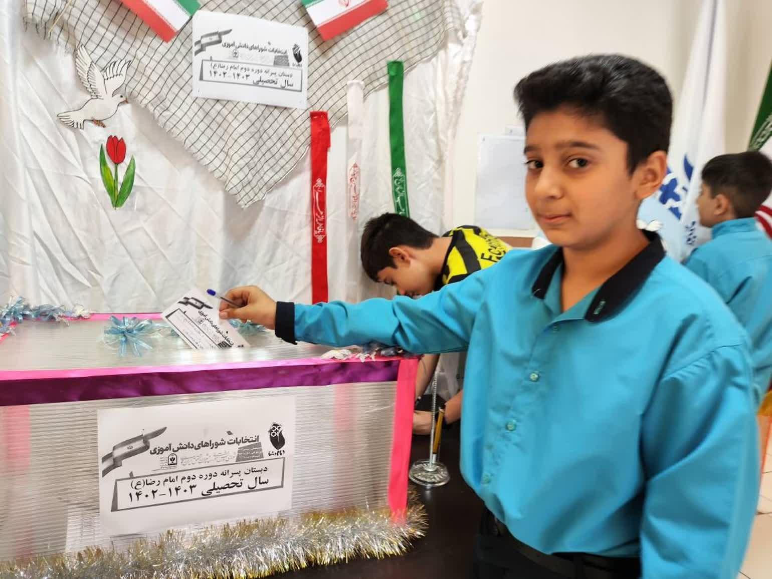بر اساس تقویم اجرایی و برنامه های وزارت آموزش و پرورش، فرایند انتخابات شورای دانش آموزی در مهرماه آغاز شد. دانش آموزان علاقمند به عضویت ضمن تبلیغات خود را آغاز و فضای پرشور انتخاباتی محیط مدرسه را فرا گرفت. به جهت آشنایی دانش آموزان با فضای انتخاباتی دانش آموزان کلاس ششم به صورت حضوری و پای صندوق های رای و سایر دانش آموزان به صورت برخط و از طریق صفحه ی شخصی خود در سایت مجتمع امام رضا(ع) در انتخابات شرکت و دانش آموزان برگزیده به مدت یک سال انتخاب شدند.