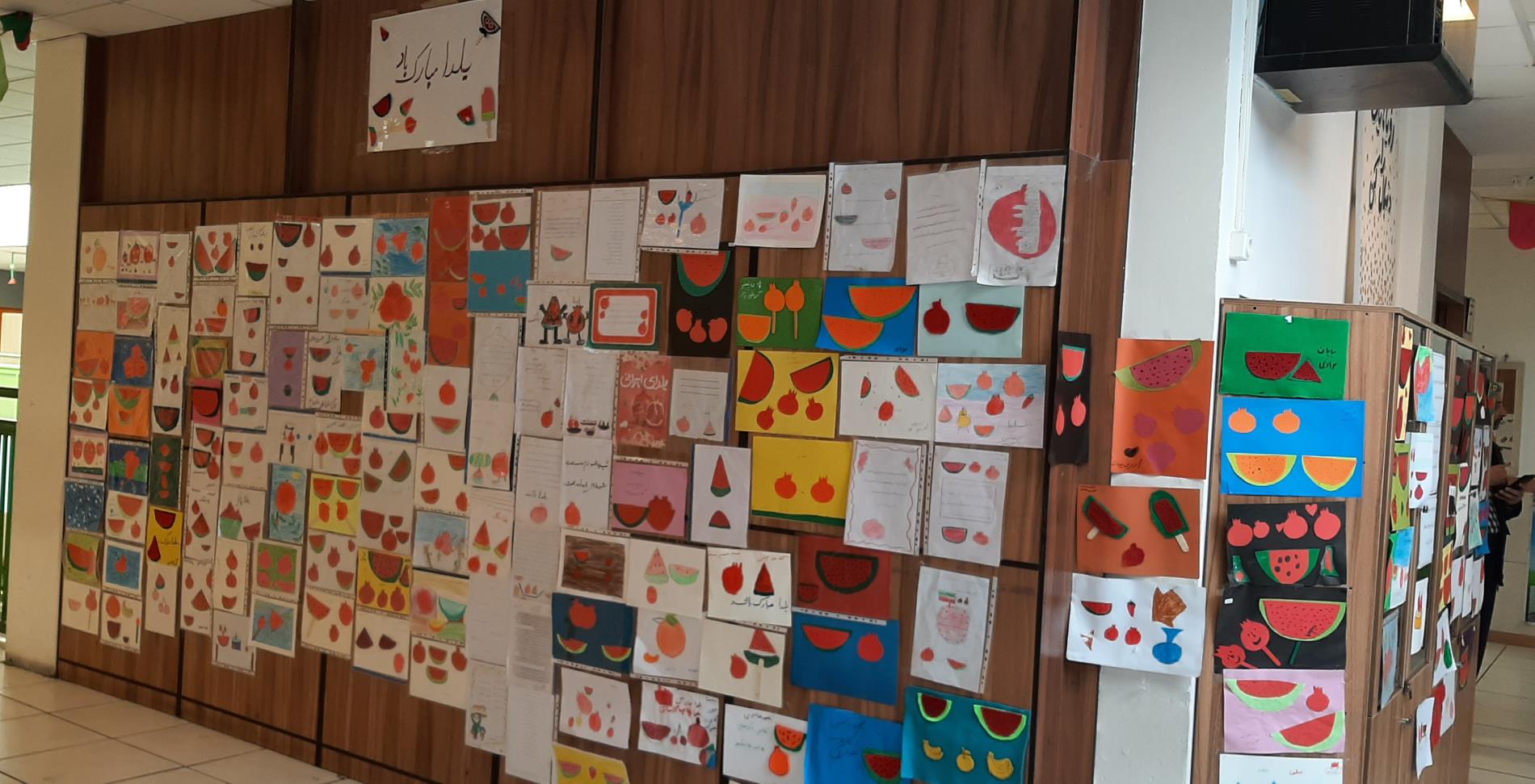در حاشیه این مراسم و به مناسبت یلدا نمایشگاه هنری دانش آموزان هم در راهرو دبستان برگزار شد.