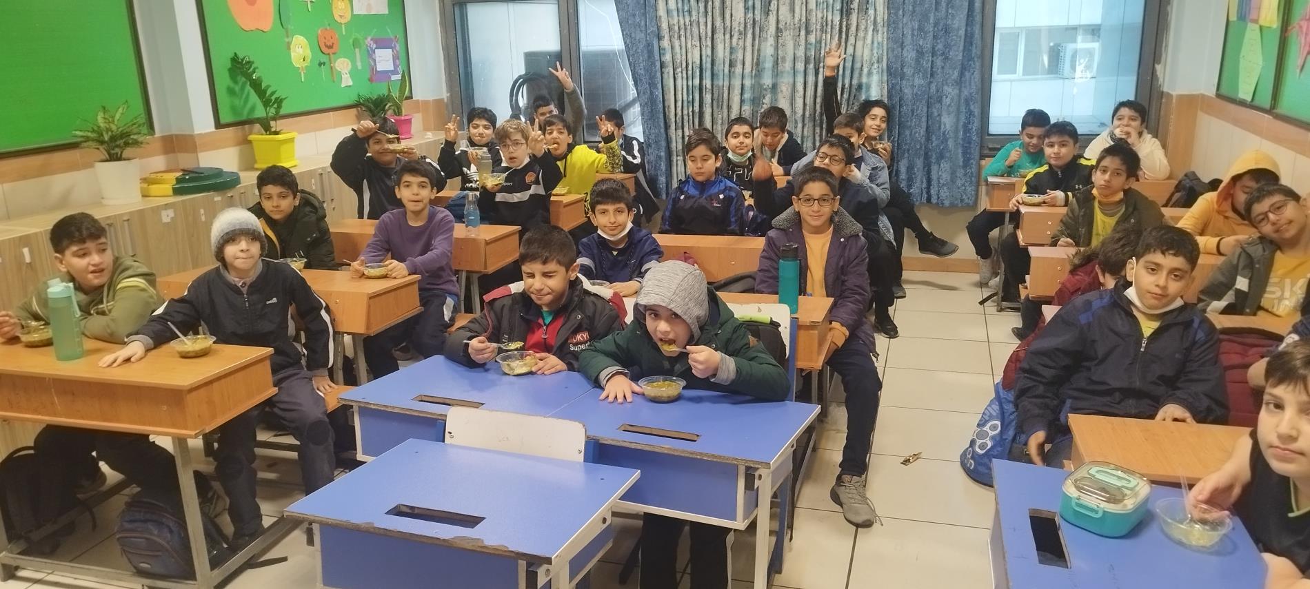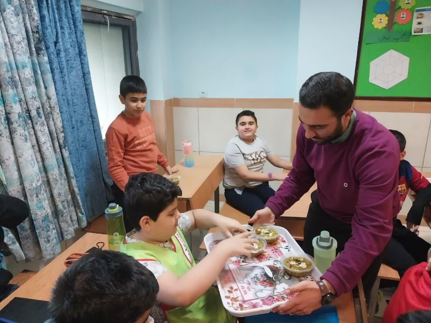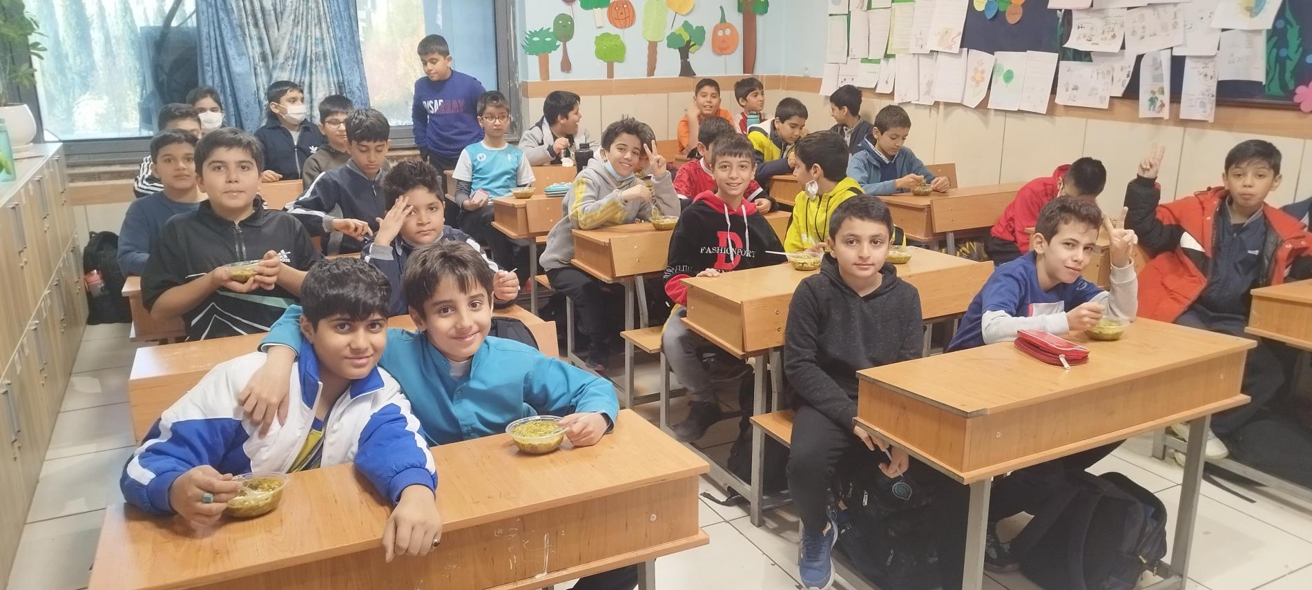 در انتهای مراسم آش نذری به صورت همگانی در بین دانش آموزان توزیع شد.