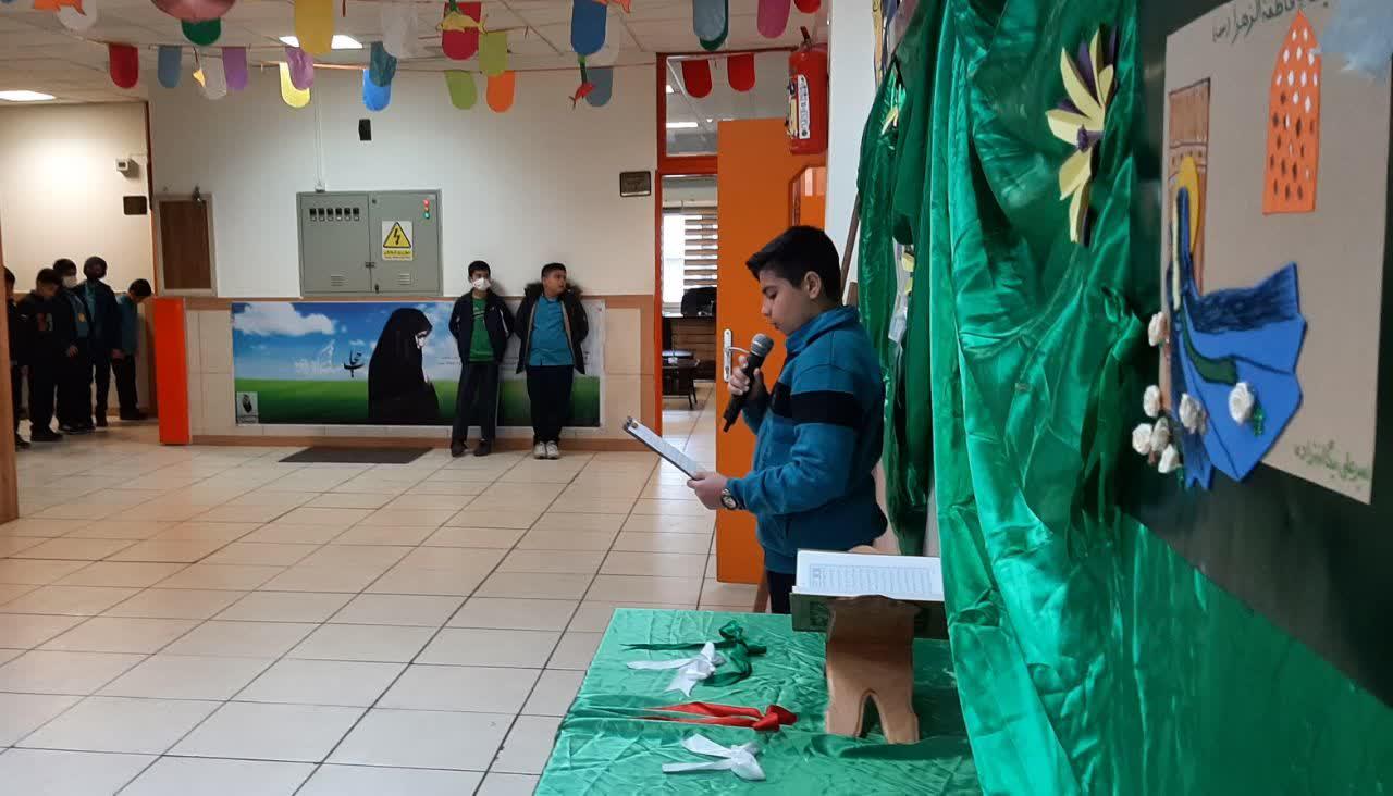 مراسم بزرگداشت ایام شهادت حضرت زهرا(س) با قرائت دعا و مداحی که با توجه به سرمای هوا به صورت شبکه در تابلوهای کلاسی به صورت زنده پخش شد و فضایی معنوی و حزن آلود در محیط دبستان بوجود آورد، برگزار شد.