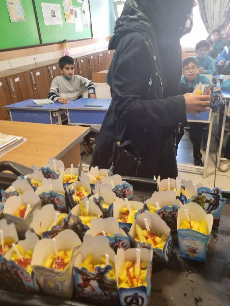 با همکاری انجمن اولیا و مربیان هم دانش آموزان با سیب زمینی سرخ شده پذیرایی شدند.