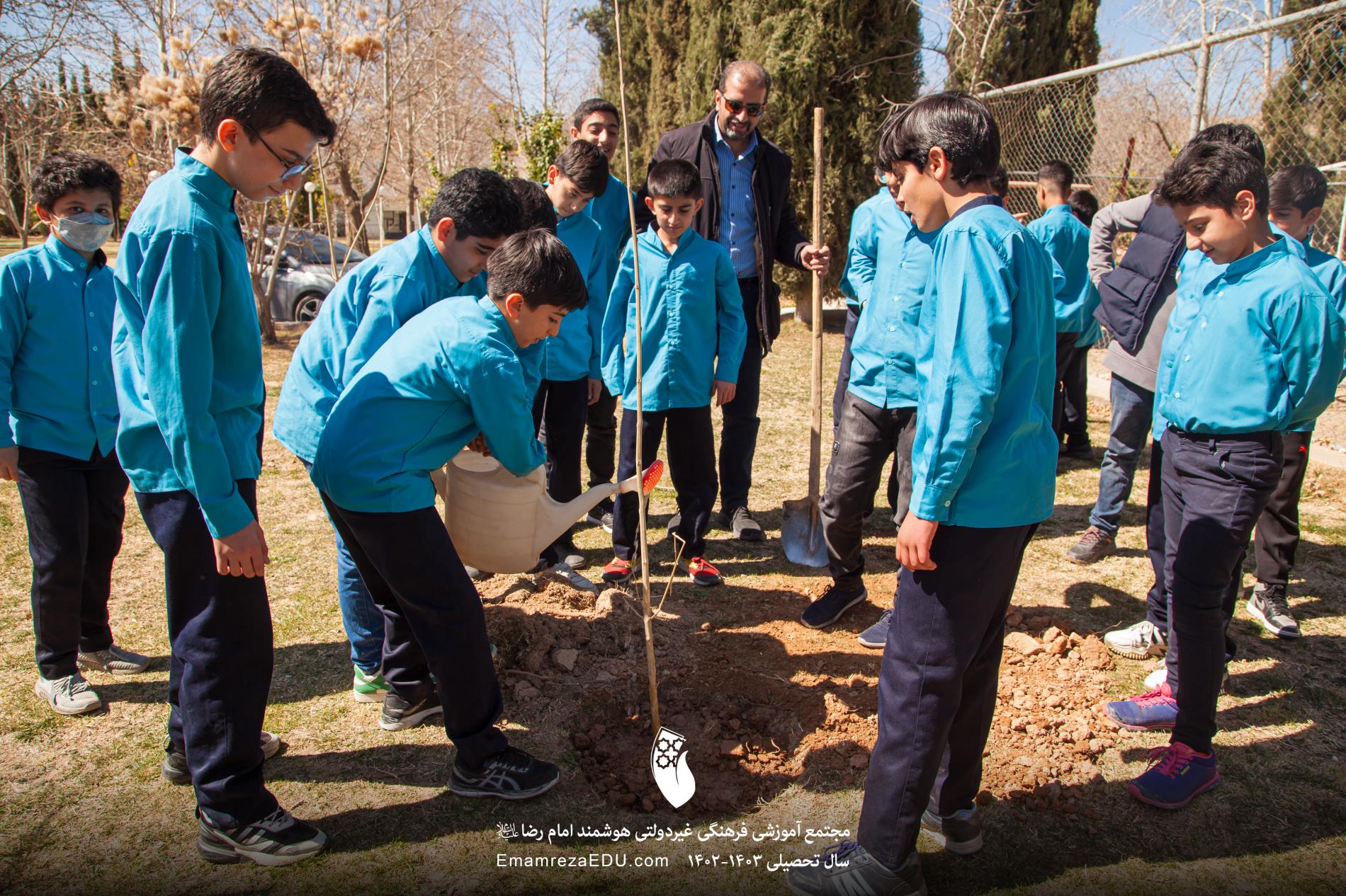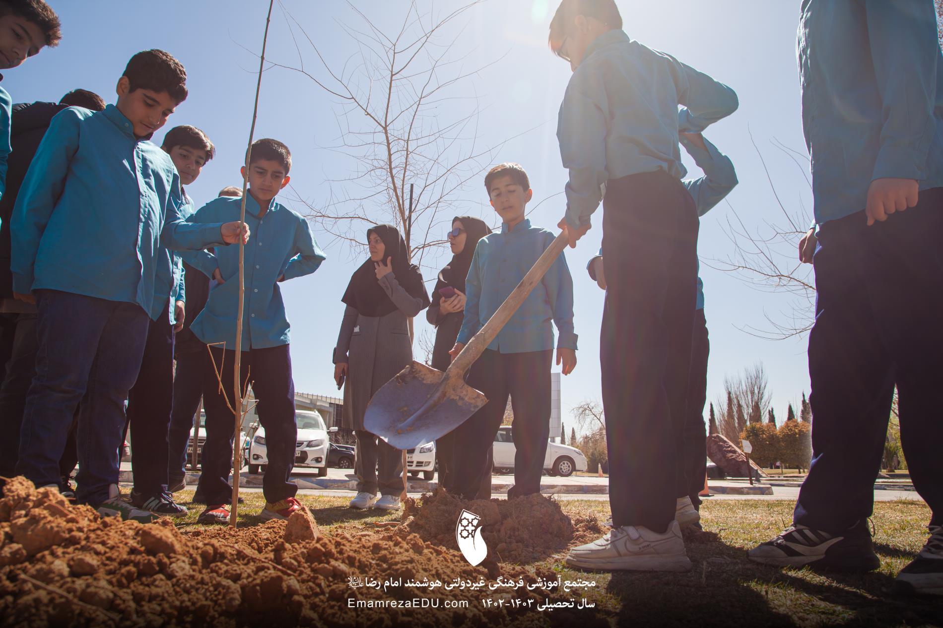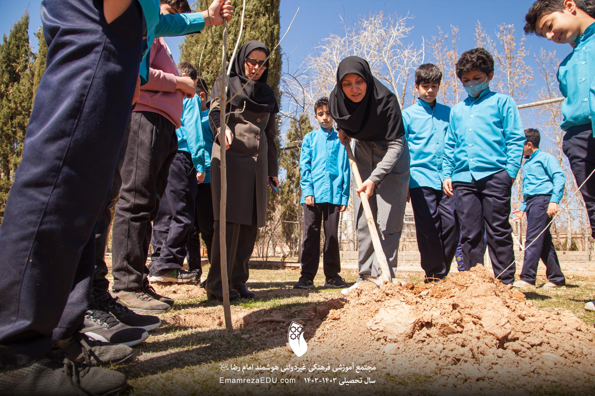 در دبستان امام رضا نیز به پاسداشت این روز دانش آموزان هر کلاس به صورت گروهی در حیاط مدرسه نهال کاشتند و به استقبال نوروز رفتند.