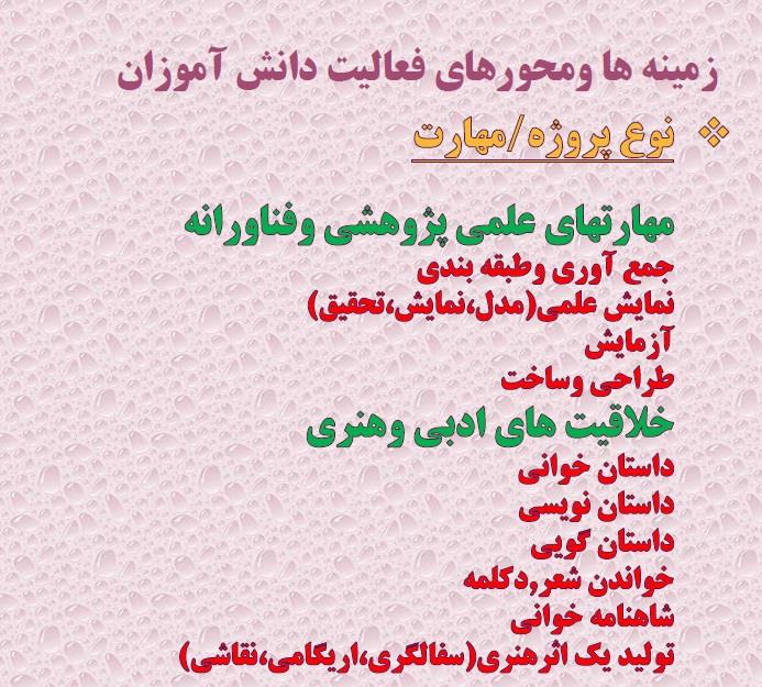 تمامی دانش آموزان می توانند در این حوزه فعالیت داشته باشند :