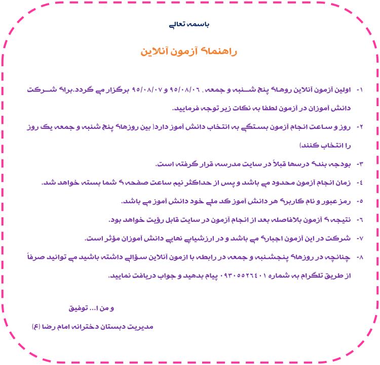 ریحانه یغمور پنجم دبستان دخترانه کلاس 503 سلام خوب بود . ولی نمی دانم نتیجه را کجا ببینم