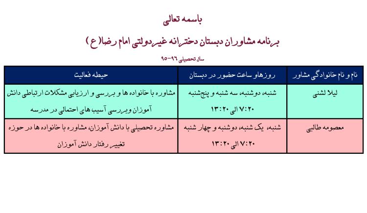 زمان بندی حضور واحد مشاوره در دبستان