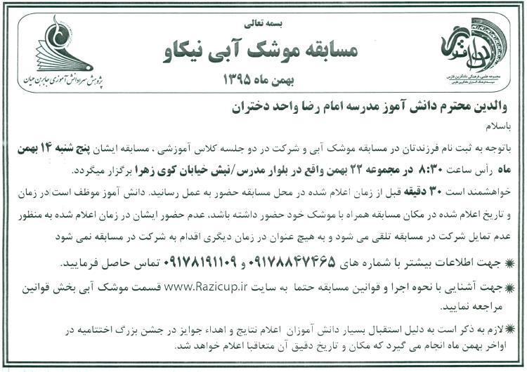 پنج شنبه 95/11/14 شروع مسابقه موشک های آبی