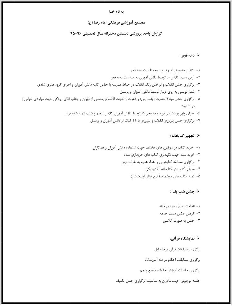 خلاصه عملکرد واحد پرورشی در 6 ماهه ی سال تحصیلی 96-95