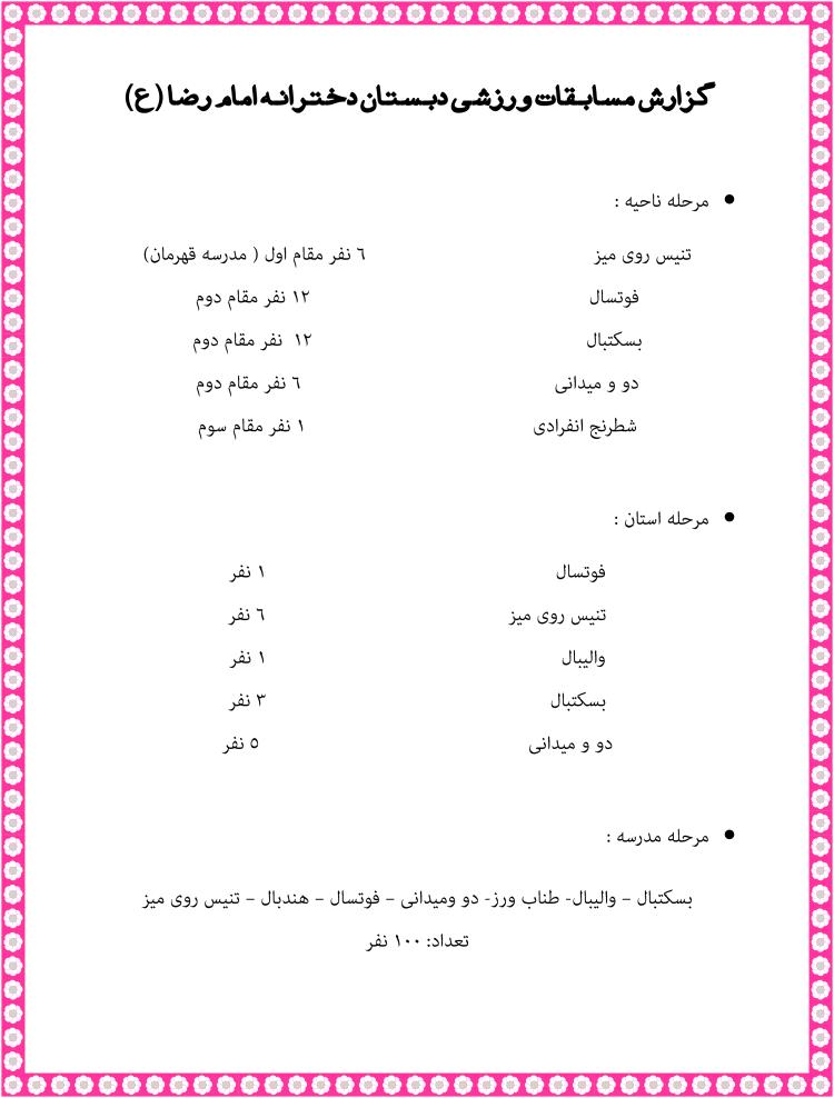 گزارش مسابقات ورزشی دبستان دخترانه امام رضا (ع)