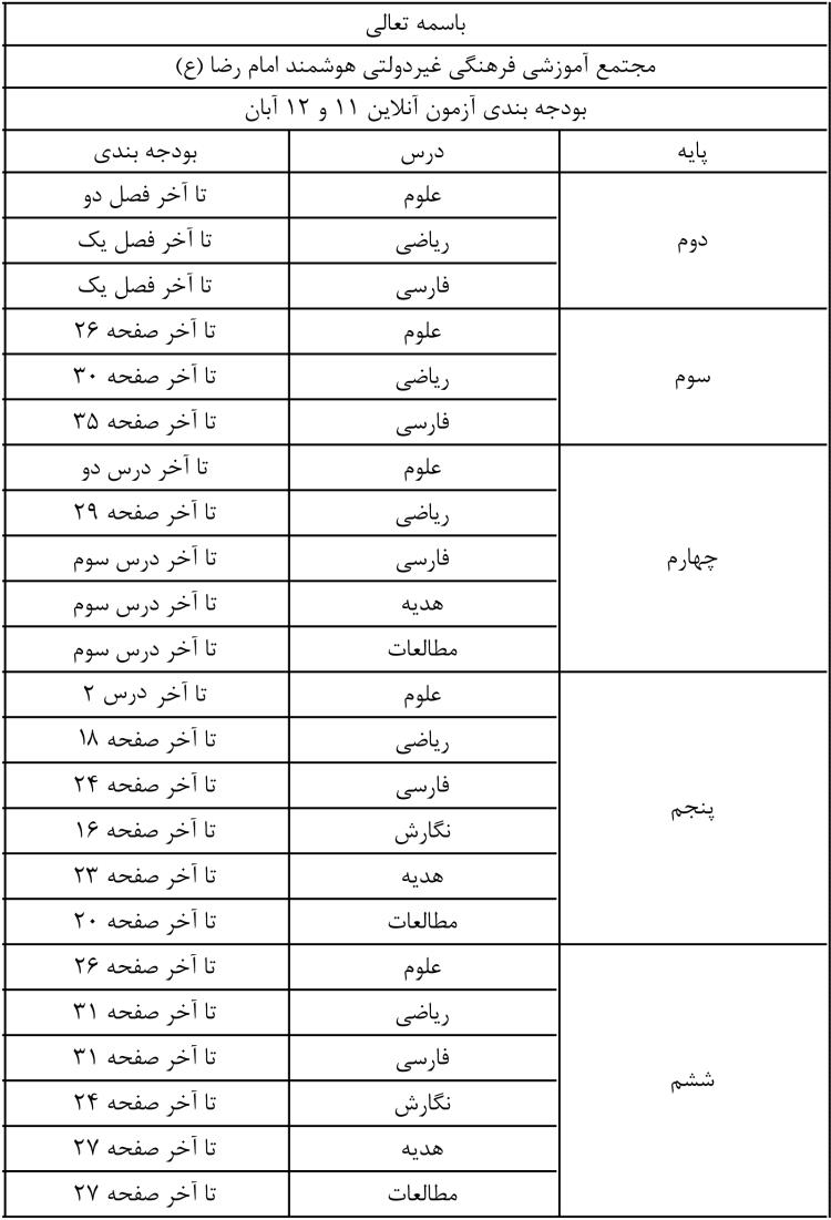 بودجه بندی آزمون آنلاین شماره 2 (آبان ماه)
