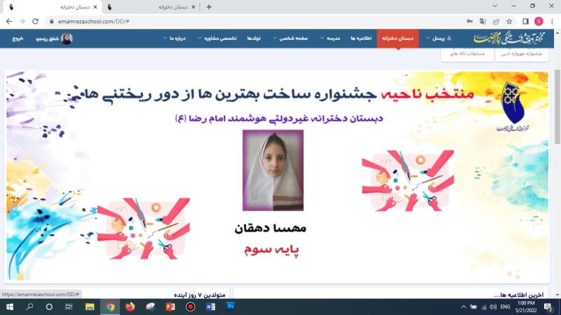 گزارش تصویری واحد پرورشی دبستان دخترانه امام رضا (ع) سال تحصیلی 99-98