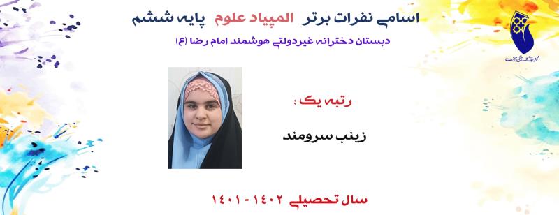 دانش آموزان دبستان دخترانه امام رضا(ع) منتخب المپیادهای علمی ناحیه سال تحصیلی 1400-1399